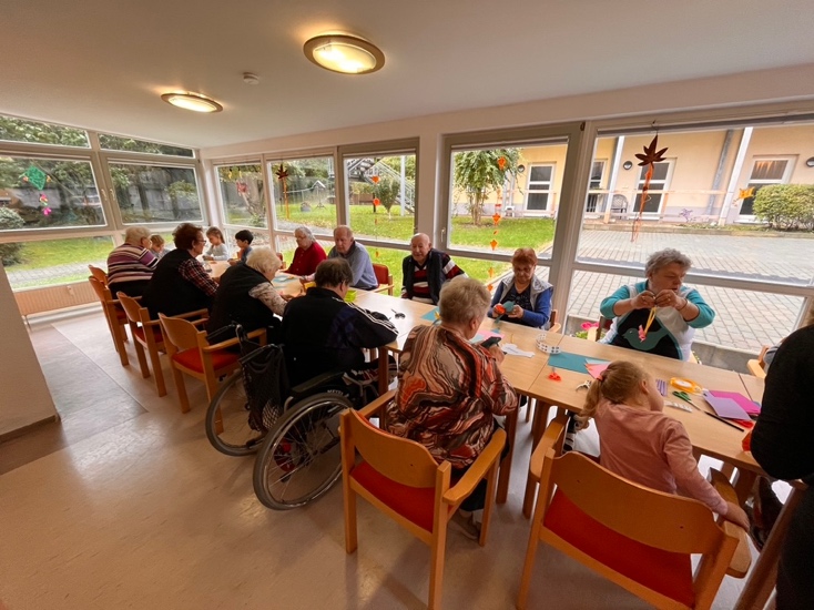 Darüber hinaus fördern wir gezielt soziale Teilhabe und Miteinander. Durch kooperative Projekte, etwa mit AWO-Kindergärten, entstehen generationsübergreifende Begegnungen, die Freude, Lebendigkeit und neue Perspektiven eröffnen.