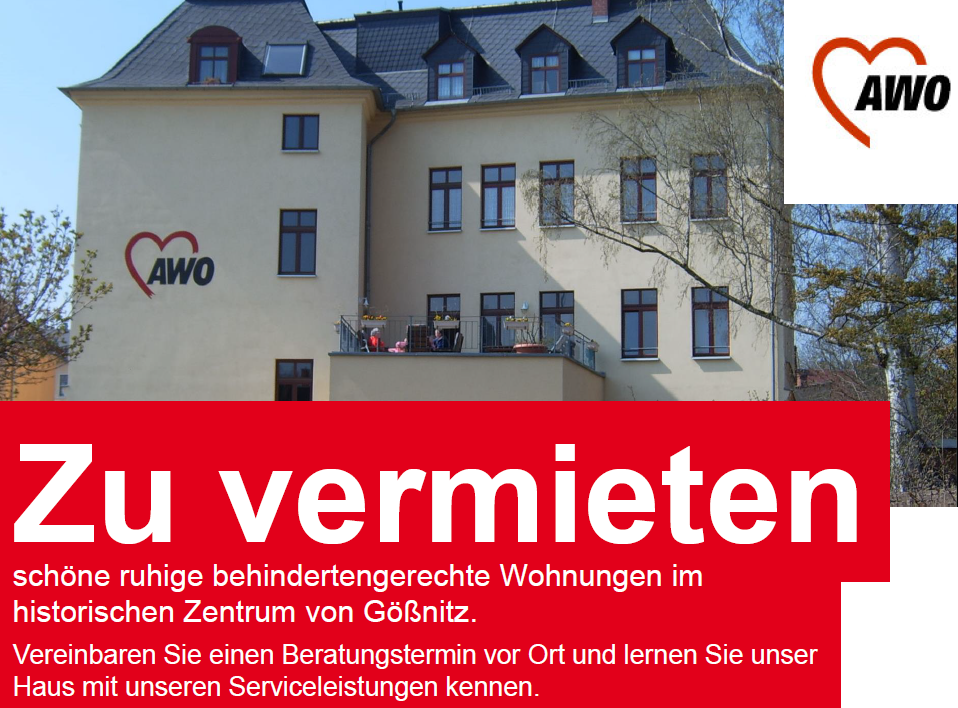 Im Zentrum von Gößnitz ist eine behindertengerechte Wohnung im Servicewohnen Goethestraße frei. Vereinbaren Sie einen Beratungstermin vor Ort und lernen Sie unser Haus mit unseren Serviceleistungen kennen.
