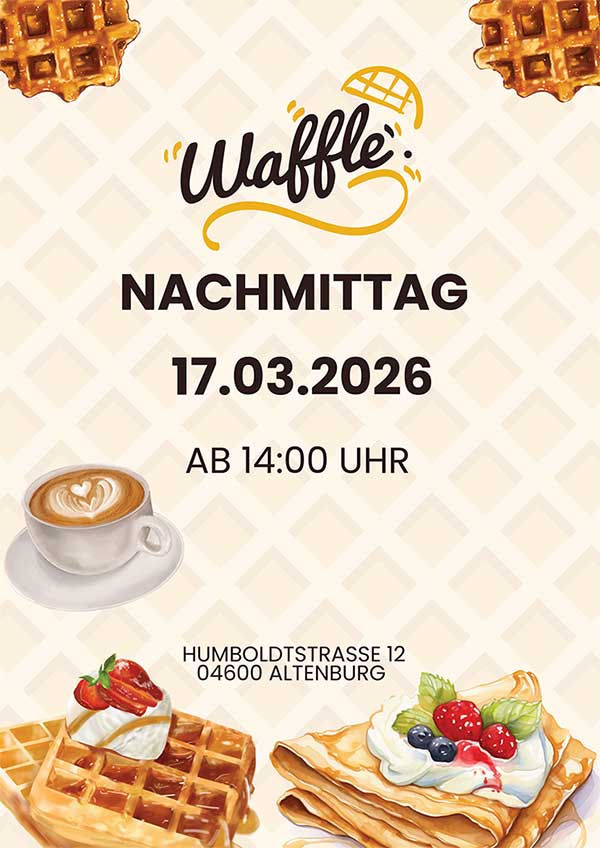 Hiermit laden wir recht herzlich in die Begegnungsstätte ein, zum "leckeren Waffelnachmittag".